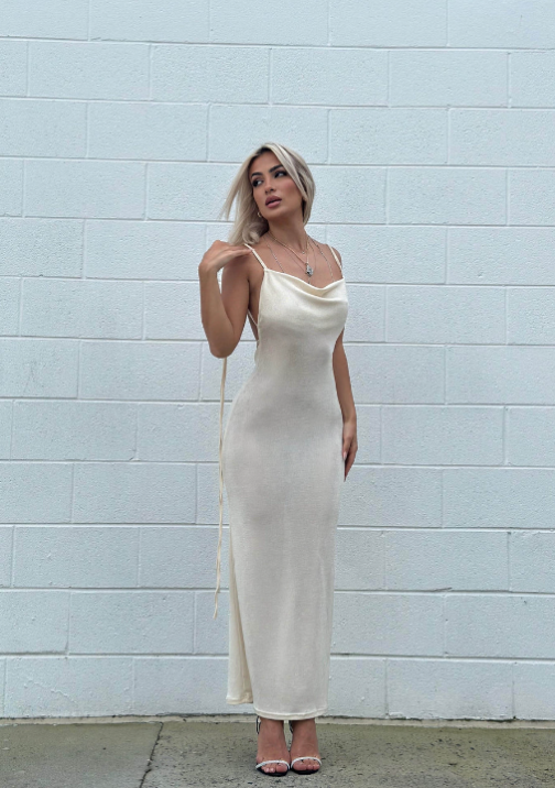 Embrace the allure of simplicity with our Satin Backless Maxi. Designed for the modern woman, this satin backless maxi dress combines elegance with comfort, making it the perfect choice for any romantic occasion.